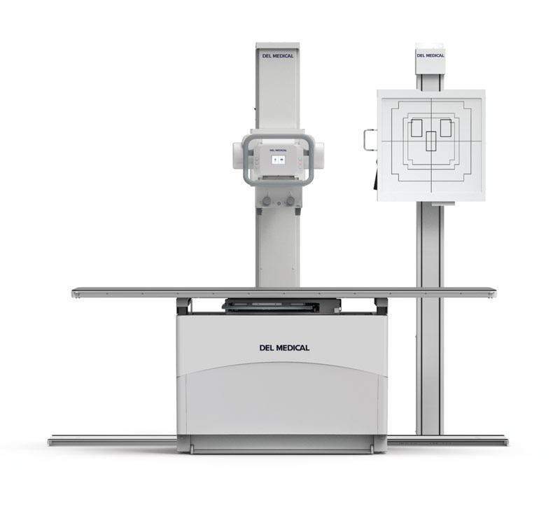 The DEL MEDICAL FMT System offers an economical, compact design ideal for hospital radiology departments, medical imaging centers, and orthopedic facilities looking to maximize space and avoid costly room modifications. The secure 10 ft (3 m) floor-mounted rail allows for effortless longitudinal travel and quick positioning. 8 ft (2.4 m) and 12 ft (3.7 m) rails are also available.