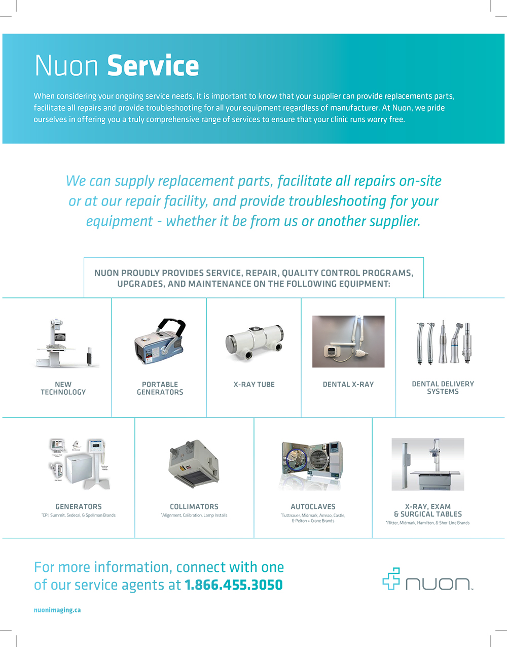 WHEN CONSIDERING YOUR ONGOING SERVICE NEEDS IT IS IMPORTANT TO KNOW THAT YOUR SUPPLIER CAN PROVIDE REPLACEMENTS PARTS, FACILITATE ALL REPAIRS AND PROVIDE TROUBLESHOOTING FOR ALL YOUR EQUIPMENT REGARDLESS OF MANUFACTURER.