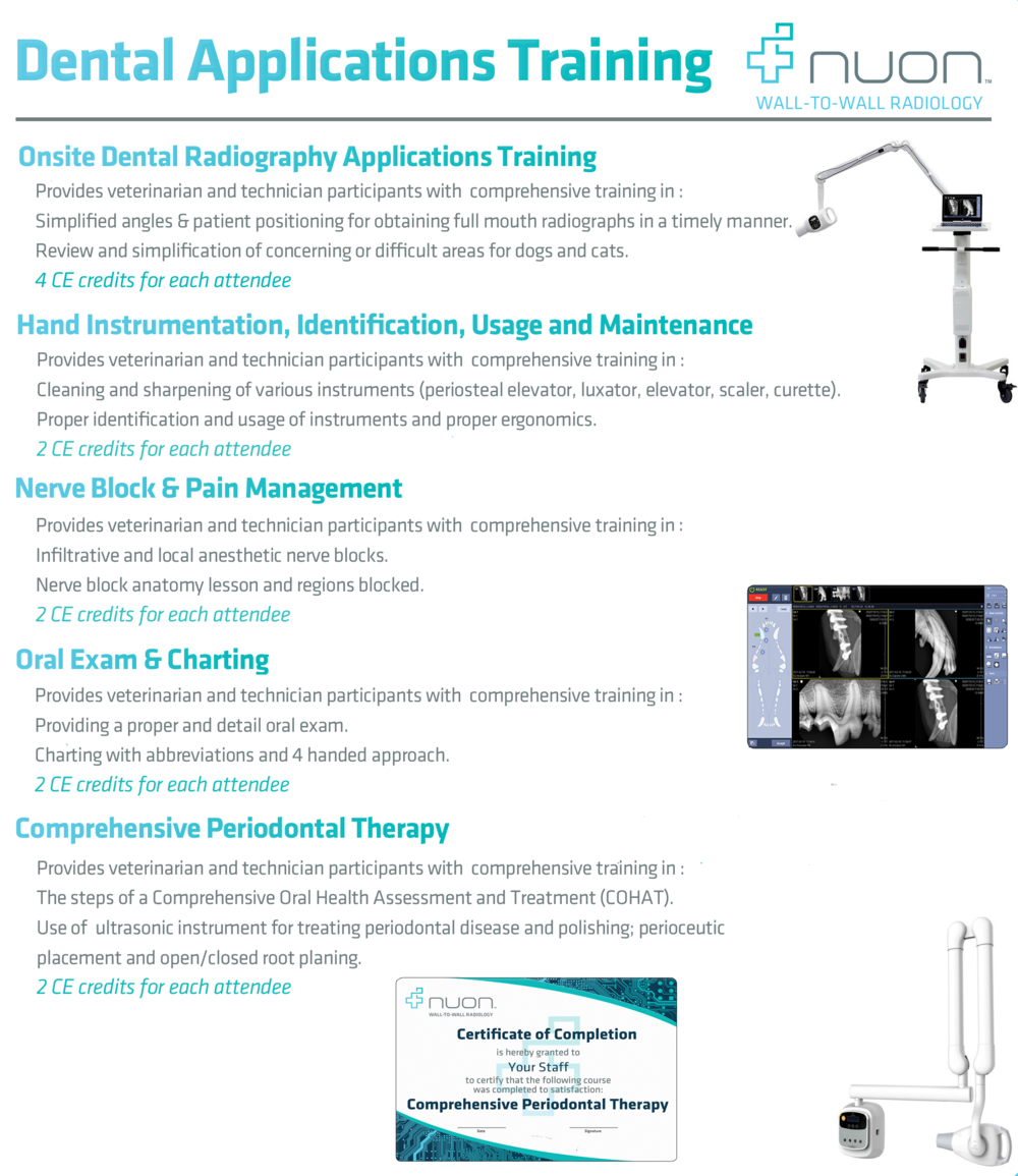 Nuon Imaging offers the following certified courses in veterinary ultrasound and dental applications, taught by professional veterinary educators: